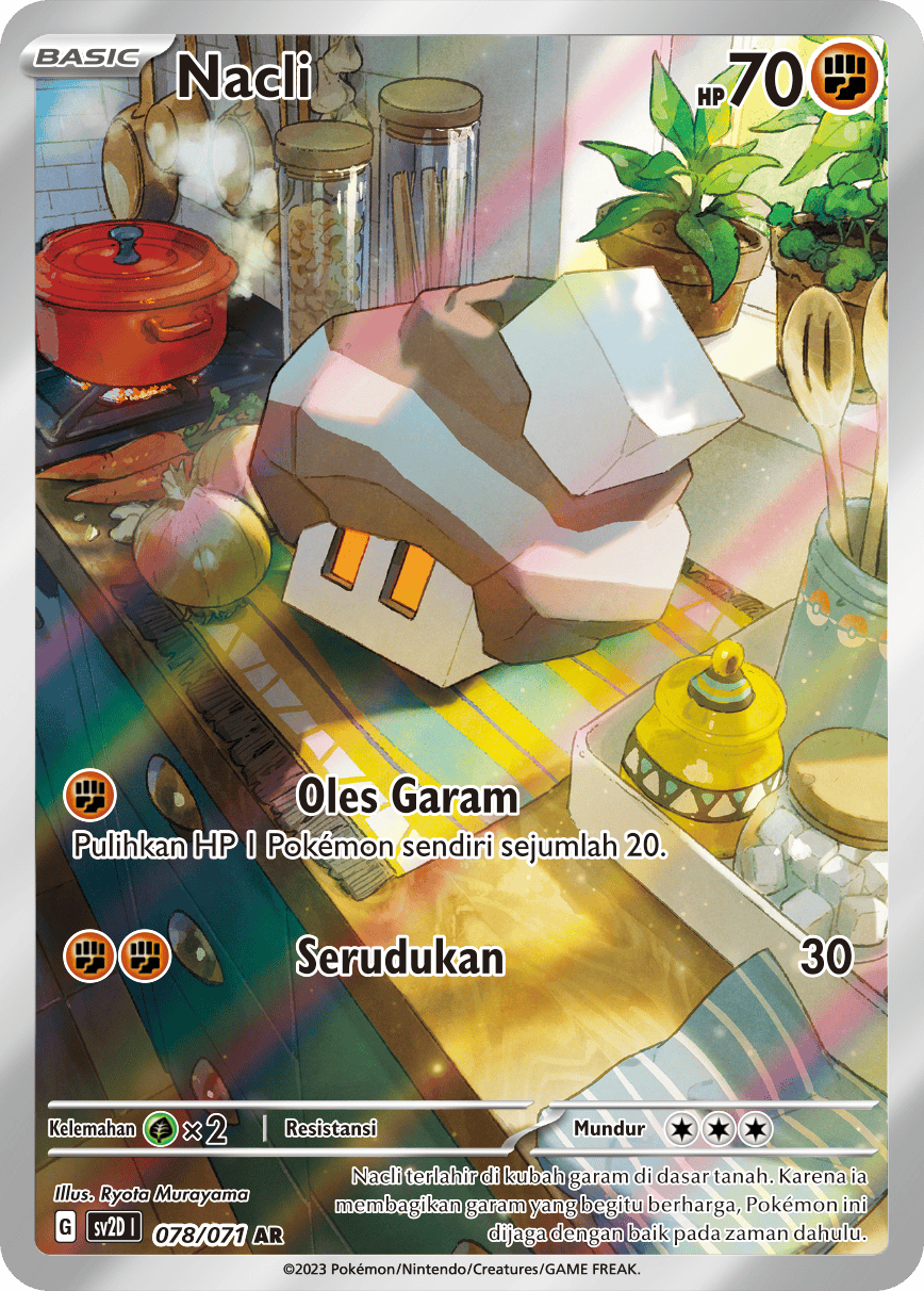 Nacli terlahir di kubah garam di dasar tanah. Karena ia membagikan garam yang begitu berharga, Pokémon ini dijaga dengan baik pada zaman dahulu.