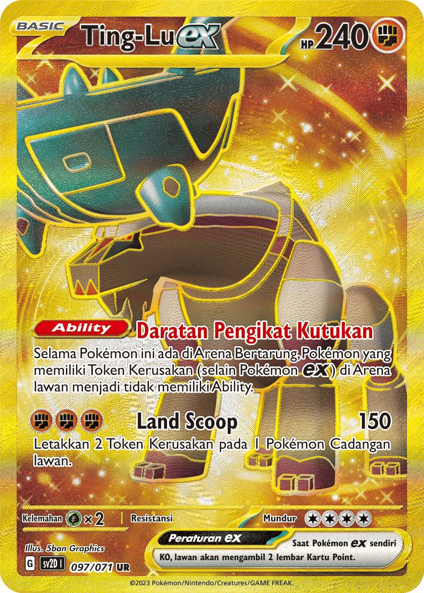 Selama Pokémon ini ada di Arena Bertarung, Pokémon yang memiliki Token Kerusakan (selain Pokémon {ex}) di Arena lawan menjadi tidak memiliki Ability.