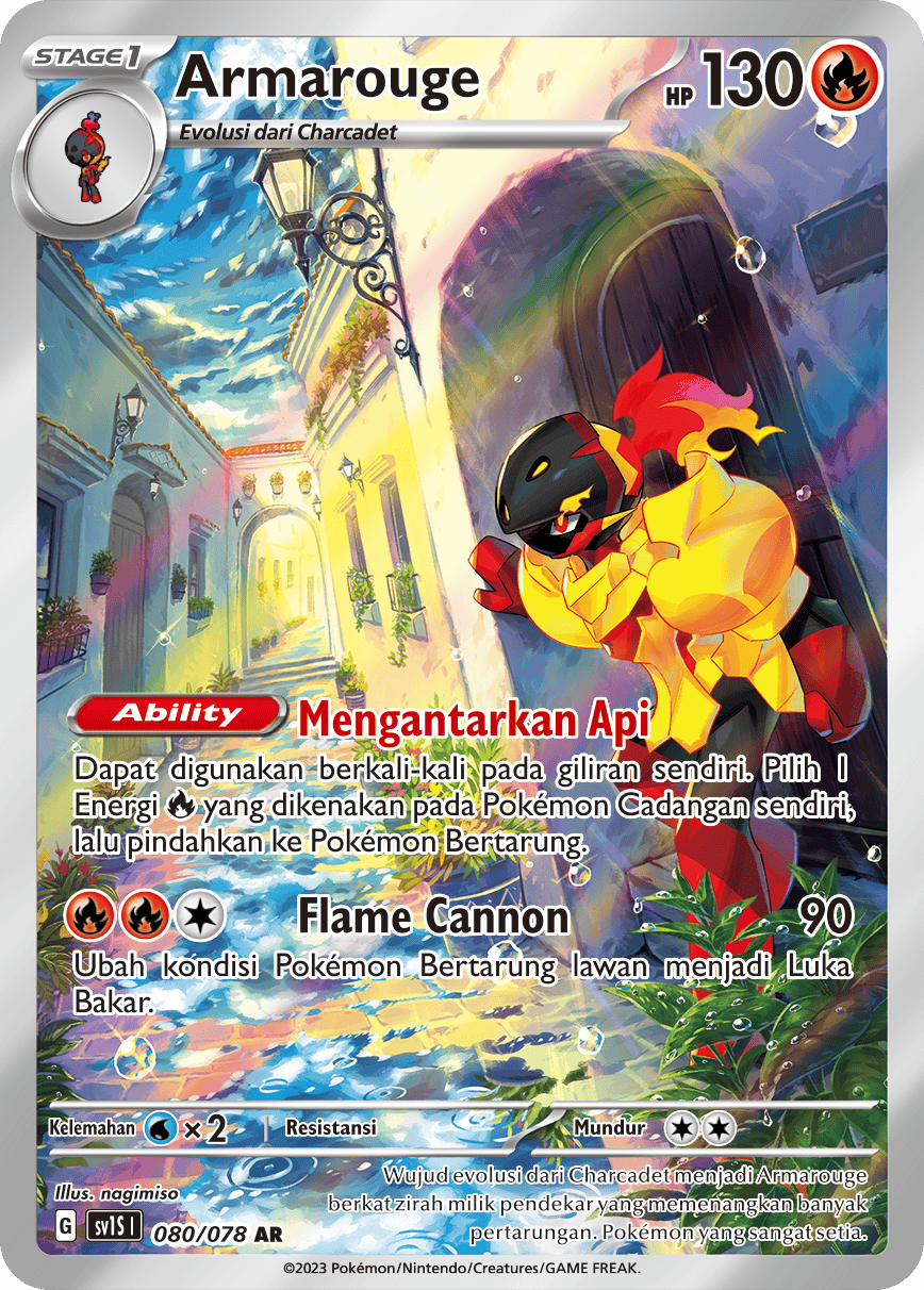 Wujud evolusi dari Charcadet menjadi Armarouge berkat zirah milik pendekar yang memenangkan banyak pertarungan. Pokémon yang sangat setia.