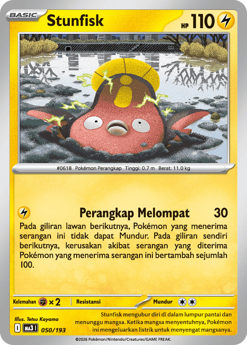 Stunfisk mengubur diri di dalam lumpur pantai dan menunggu mangsa. Ketika mangsa menyentuhnya, Pokémon ini mengeluarkan listrik untuk menyengat mangsanya.