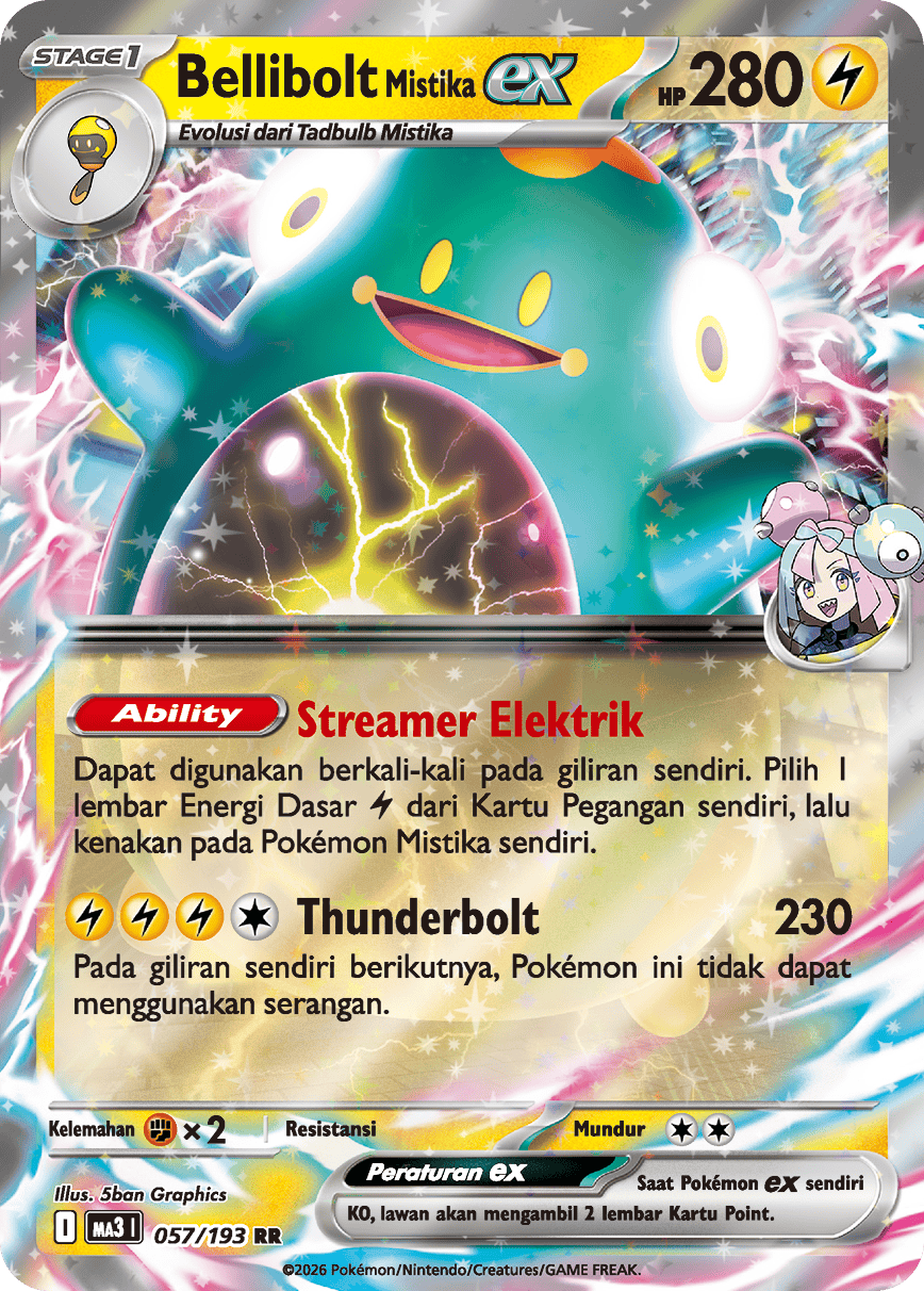 Dapat digunakan berkali-kali pada giliran sendiri. Pilih 1 lembar Energi Dasar {Listrik} dari Kartu Pegangan sendiri, lalu kenakan pada Pokémon Mistika sendiri.