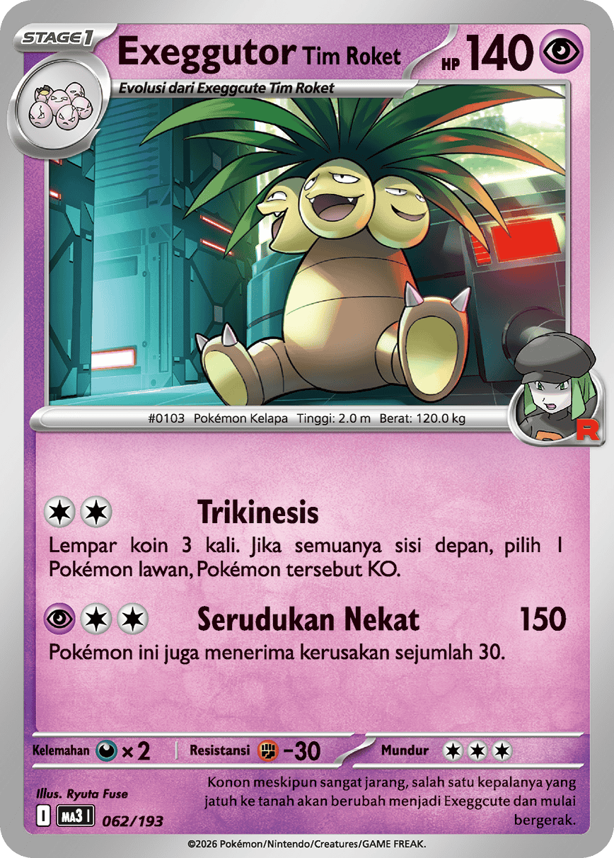 Lempar koin 3 kali. Jika semuanya sisi depan, pilih 1 Pokémon lawan, Pokémon tersebut KO.