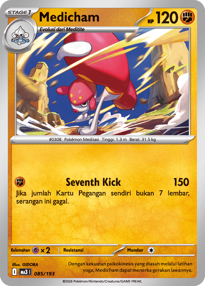 Dengan kekuatan psikokinesis yang diasah melalui latihan yoga, Medicham dapat menerka gerakan lawannya.
