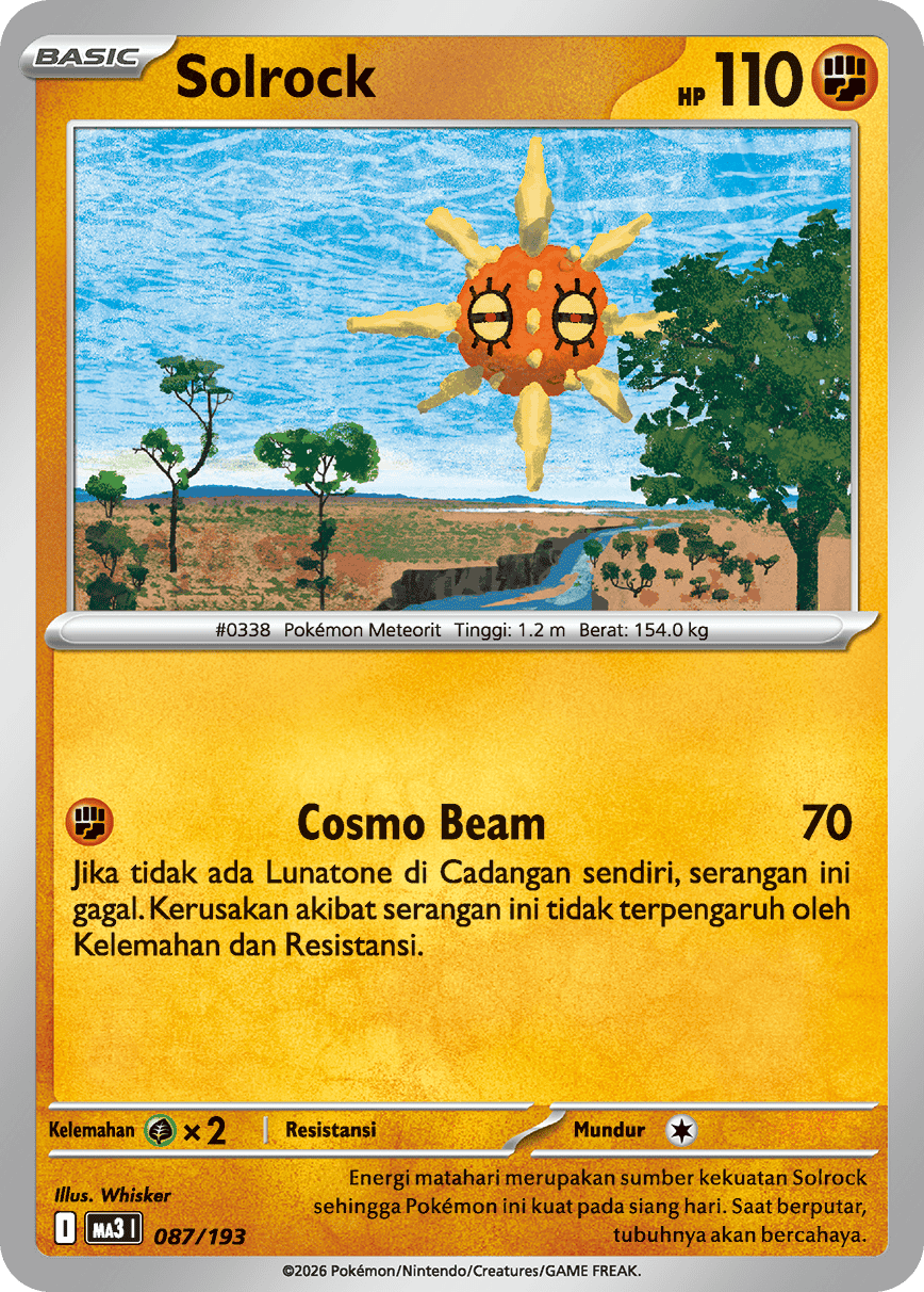 Energi matahari merupakan sumber kekuatan Solrock sehingga Pokémon ini kuat pada siang hari. Saat berputar, tubuhnya akan bercahaya.