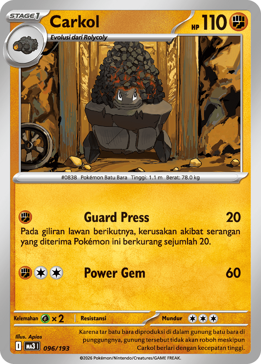 Karena tar batu bara diproduksi di dalam gunung batu bara di punggungnya, gunung tersebut tidak akan roboh meskipun Carkol berlari dengan kecepatan tinggi.