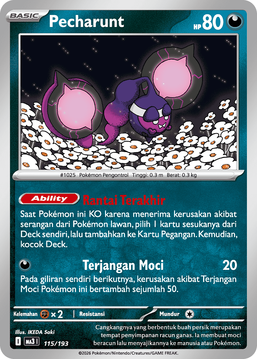 Saat Pokémon ini KO karena menerima kerusakan akibat serangan dari Pokémon lawan, pilih 1 kartu sesukanya dari Deck sendiri, lalu tambahkan ke Kartu Pegangan. Kemudian, kocok Deck.