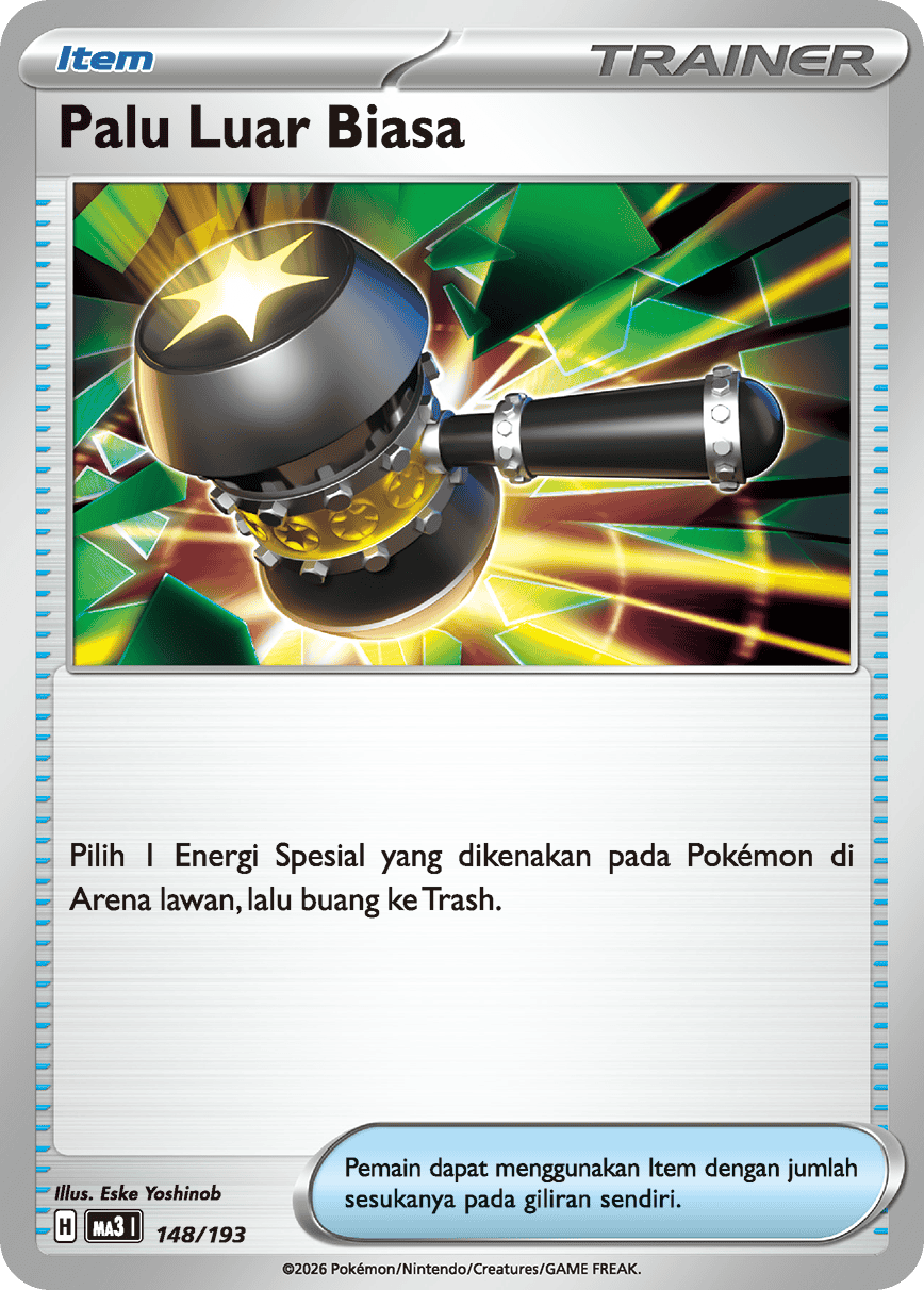Pilih 1 Energi Spesial yang dikenakan pada Pokémon di Arena lawan, lalu buang ke Trash.