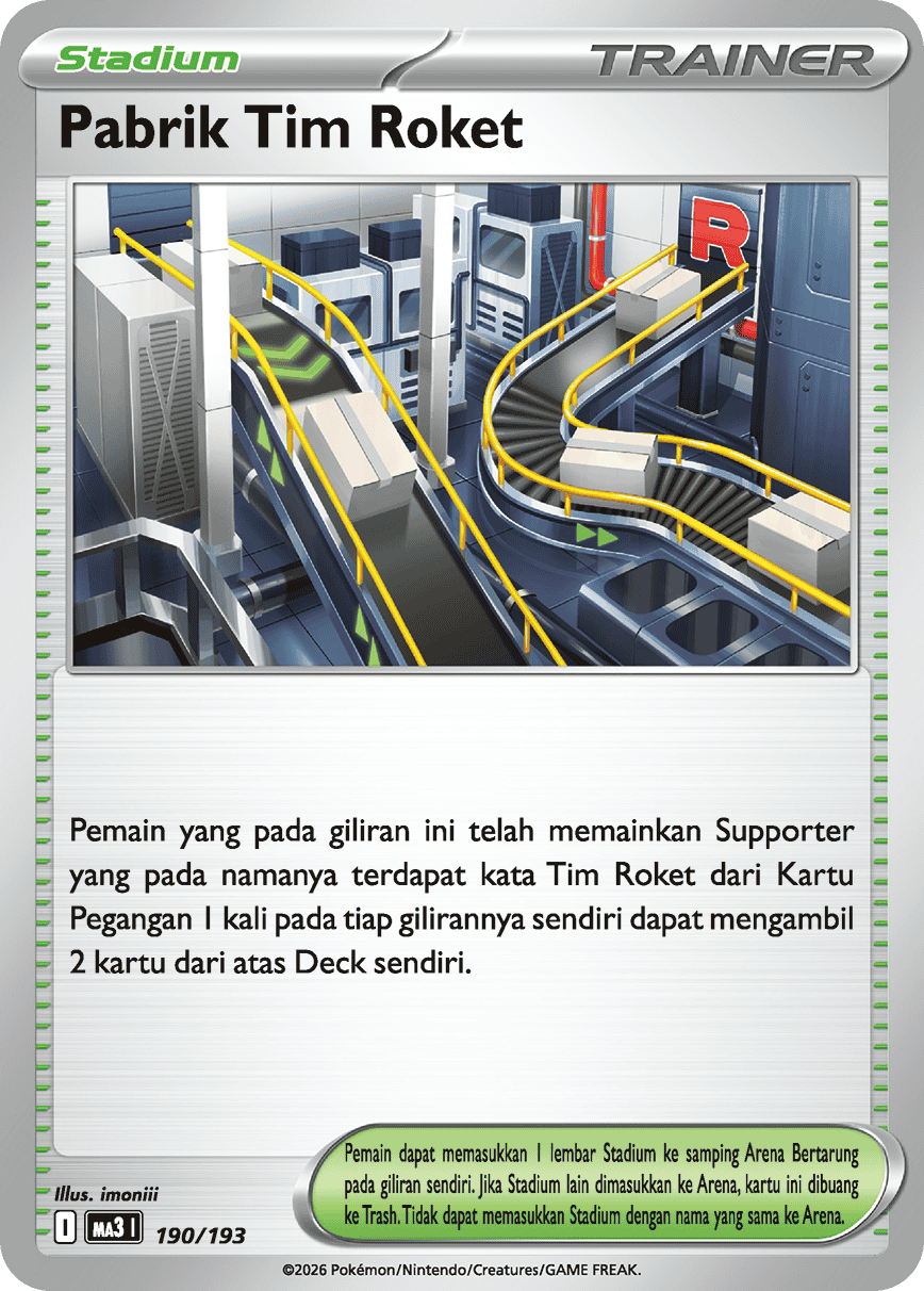 Pemain yang pada giliran ini telah memainkan Supporter yang pada namanya terdapat kata Tim Roket dari Kartu Pegangan 1 kali pada tiap gilirannya sendiri dapat mengambil 2 kartu dari atas Deck sendiri.