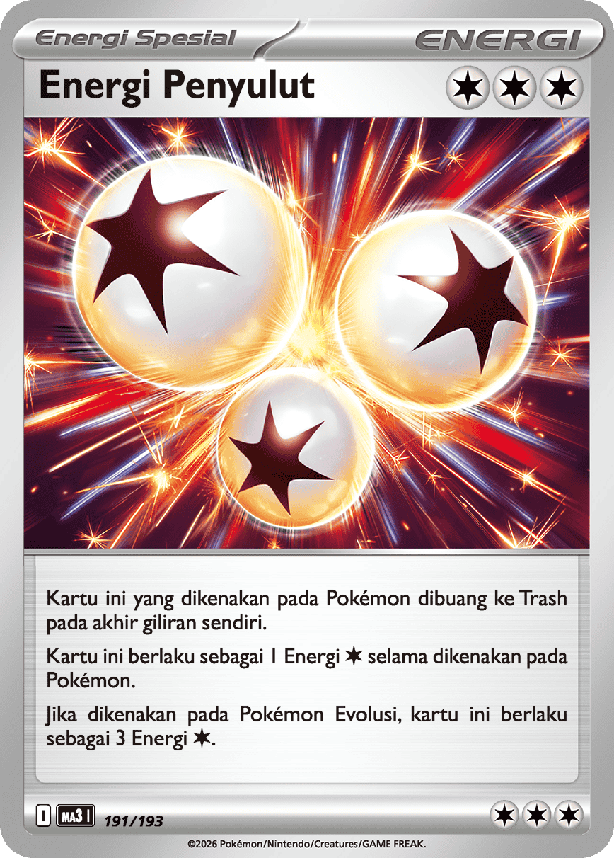 Kartu ini yang dikenakan pada Pokémon dibuang ke Trash pada akhir giliran sendiri. Kartu ini berlaku sebagai 1 Energi {Bening} selama dikenakan pada Pokémon. Jika dikenakan pada Pokémon Evolusi, kartu ini berlaku sebagai 3 Energi {Bening}.