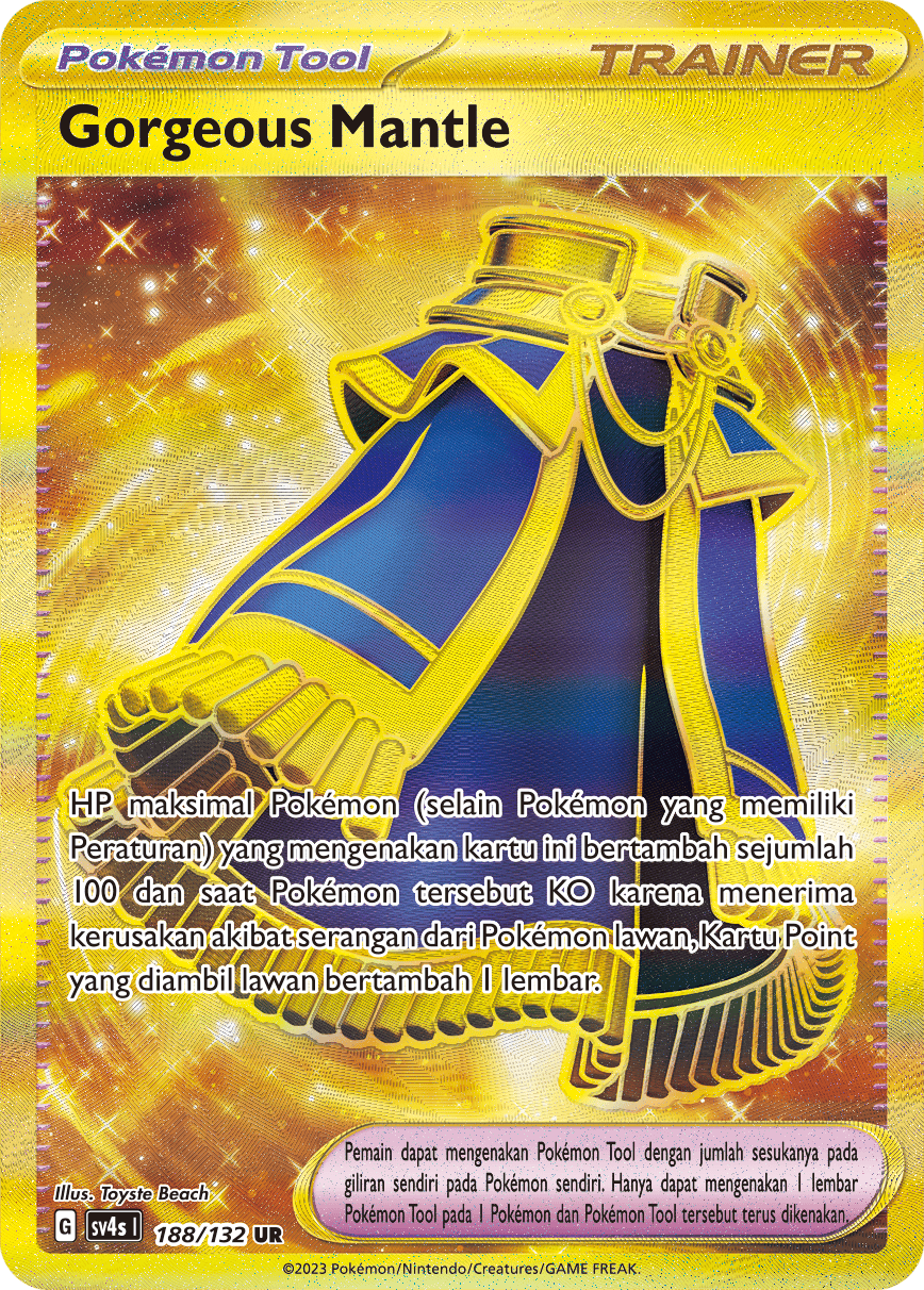 HP maksimal Pokémon (selain Pokémon yang memiliki Peraturan) yang mengenakan kartu ini bertambah sejumlah 100 dan saat Pokémon tersebut KO karena menerima kerusakan akibat serangan dari Pokémon lawan, Kartu Point yang diambil lawan bertambah 1 lembar.