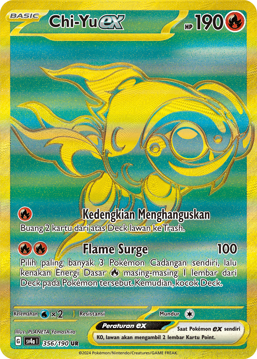Pilih paling banyak 3 Pokémon Cadangan sendiri, lalu kenakan Energi Dasar {Api} masing-masing 1 lembar dari Deck pada Pokémon tersebut. Kemudian, kocok Deck.