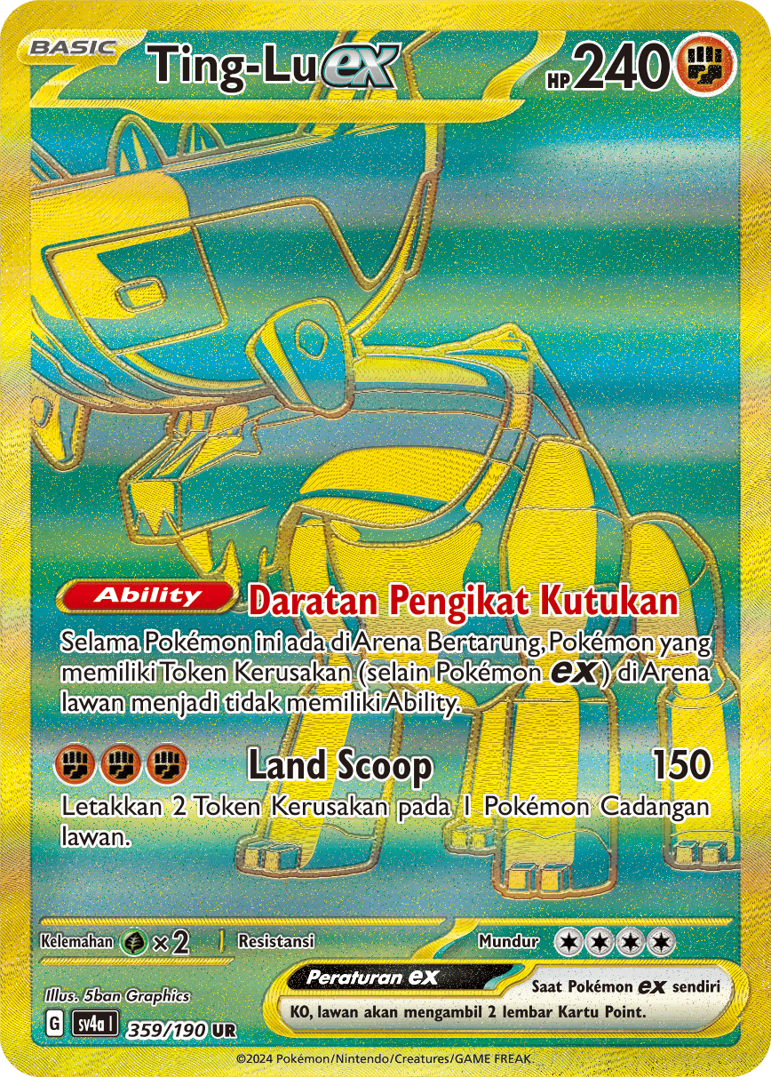 Selama Pokémon ini ada di Arena Bertarung, Pokémon yang memiliki Token Kerusakan (selain Pokémon ex) di Arena lawan menjadi tidak memiliki Ability.