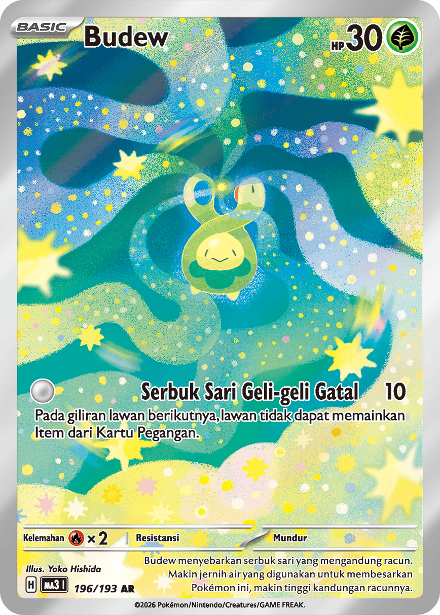Budew menyebarkan serbuk sari yang mengandung racun. Makin jernih air yang digunakan untuk membesarkan Pokémon ini, makin tinggi kandungan racunnya.