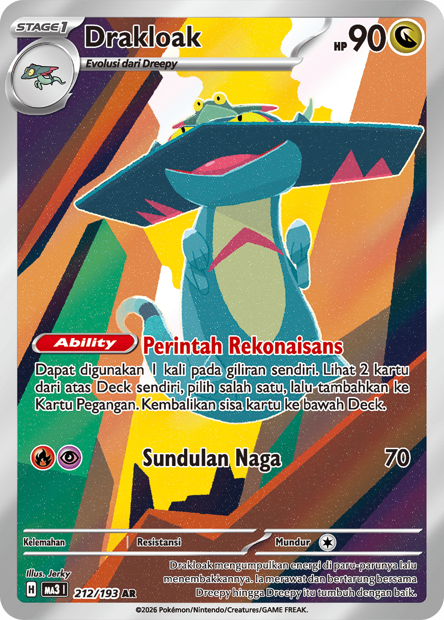 Drakloak mengumpulkan energi di paru-parunya lalu menembakkannya. Ia merawat dan bertarung bersama Dreepy hingga Dreepy itu tumbuh dengan baik.