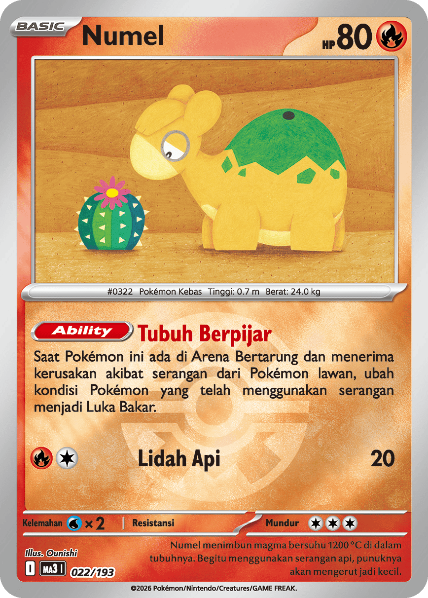 Numel menimbun magma bersuhu 1200 ℃ di dalam tubuhnya. Begitu menggunakan serangan api, punuknya akan mengerut jadi kecil.