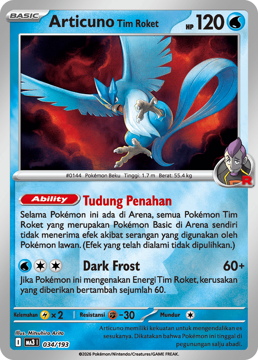 Jika Pokémon ini mengenakan Energi Tim Roket, kerusakan yang diberikan bertambah sejumlah 60.