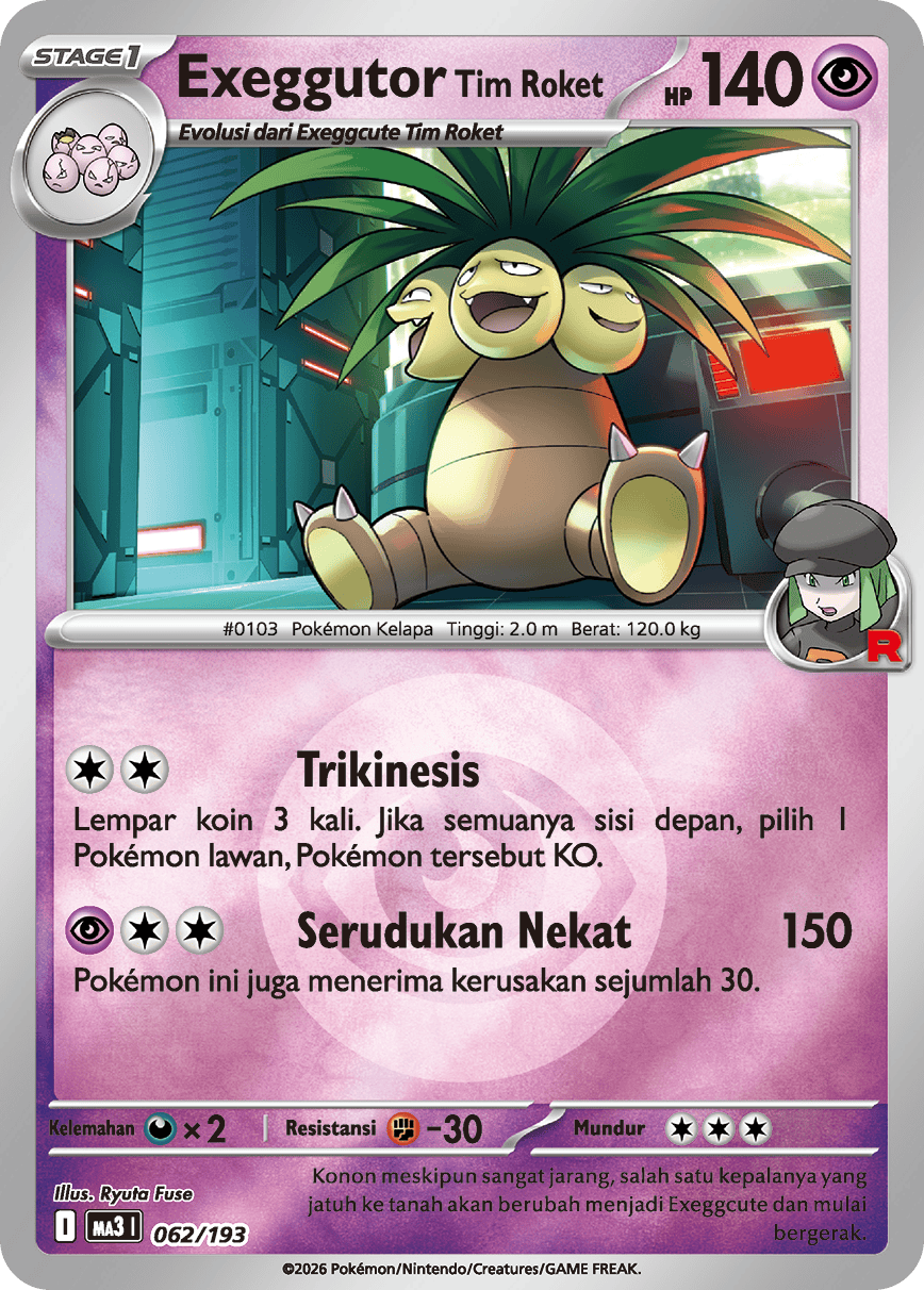 Lempar koin 3 kali. Jika semuanya sisi depan, pilih 1 Pokémon lawan, Pokémon tersebut KO.