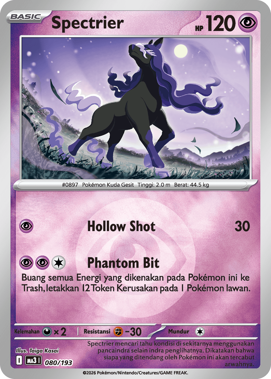 Buang semua Energi yang dikenakan pada Pokémon ini ke Trash, letakkan 12 Token Kerusakan pada 1 Pokémon lawan.