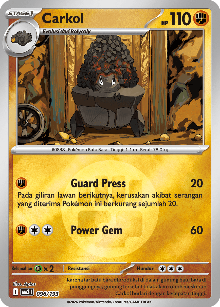 Karena tar batu bara diproduksi di dalam gunung batu bara di punggungnya, gunung tersebut tidak akan roboh meskipun Carkol berlari dengan kecepatan tinggi.
