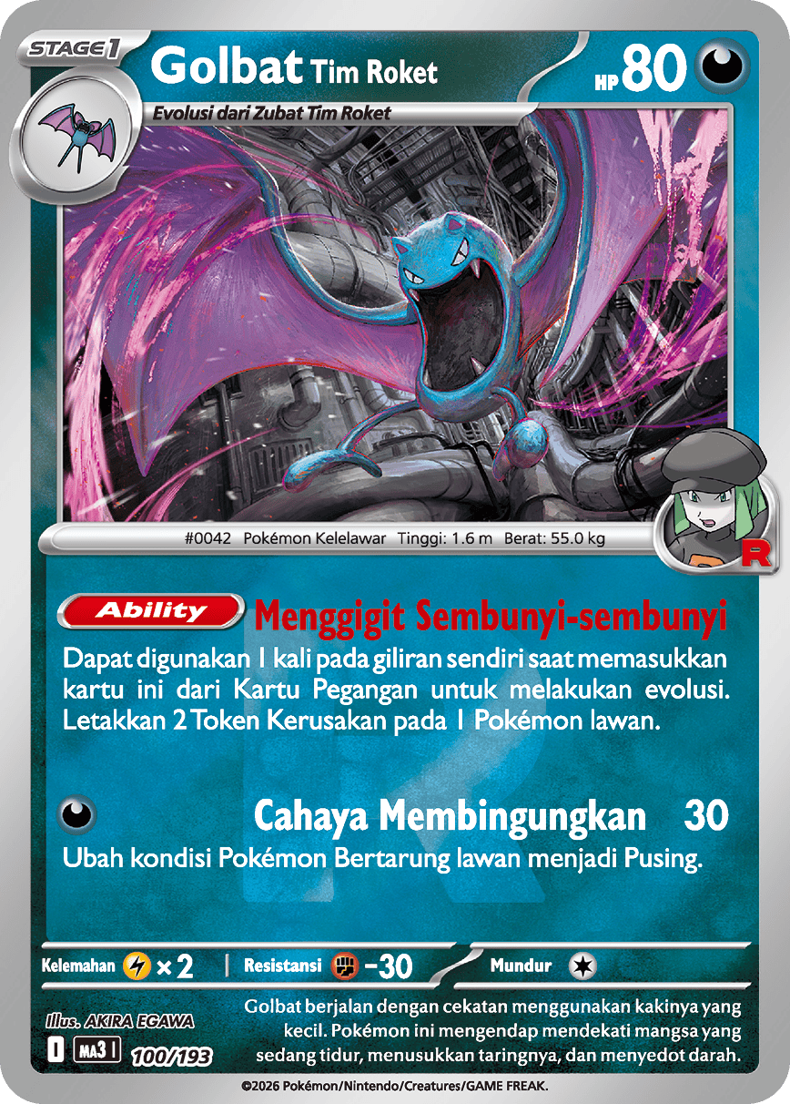 Dapat digunakan 1 kali pada giliran sendiri saat memasukkan kartu ini dari Kartu Pegangan untuk melakukan evolusi. Letakkan 2 Token Kerusakan pada 1 Pokémon lawan.