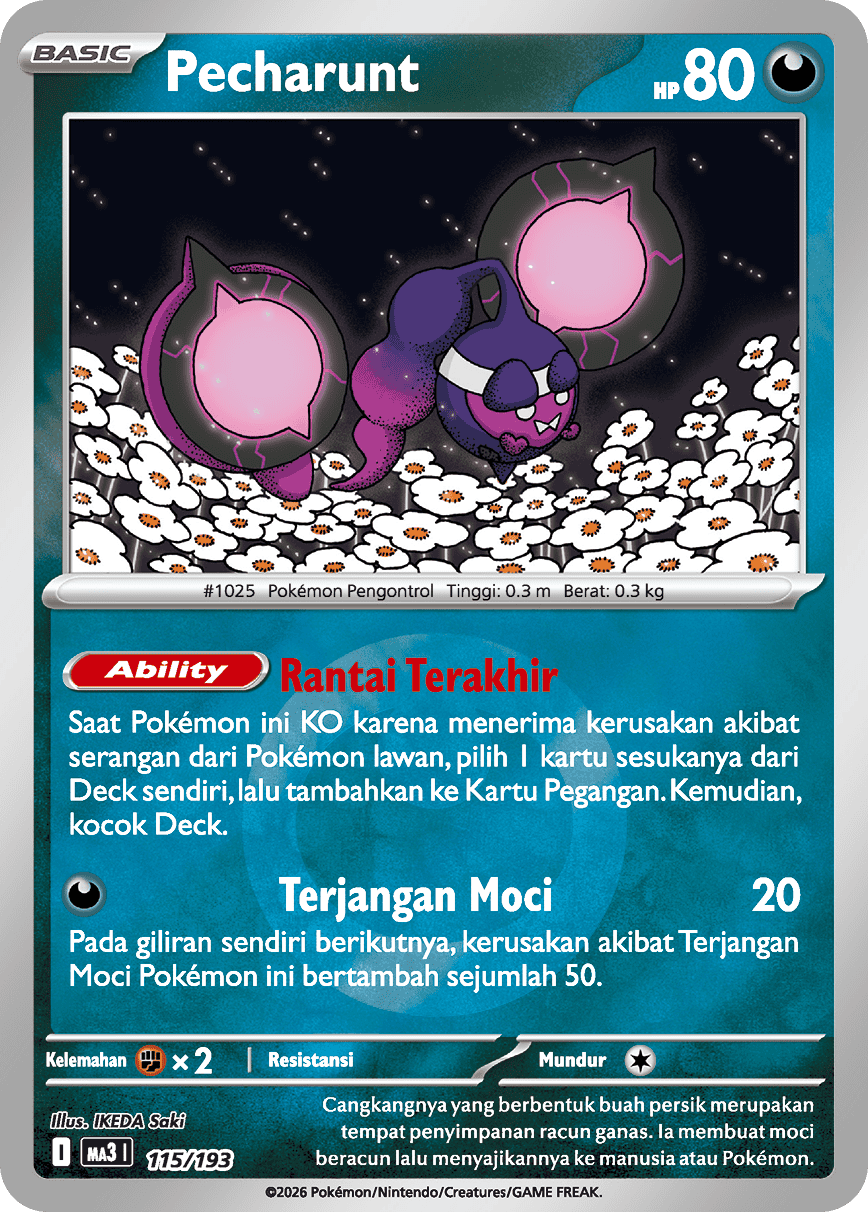 Saat Pokémon ini KO karena menerima kerusakan akibat serangan dari Pokémon lawan, pilih 1 kartu sesukanya dari Deck sendiri, lalu tambahkan ke Kartu Pegangan. Kemudian, kocok Deck.