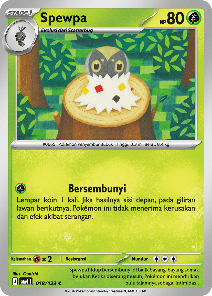 Spewpa hidup bersembunyi di balik bayang-bayang semak belukar. Ketika diserang musuh, Pokémon ini mendirikan bulu tajamnya sebagai intimidasi.