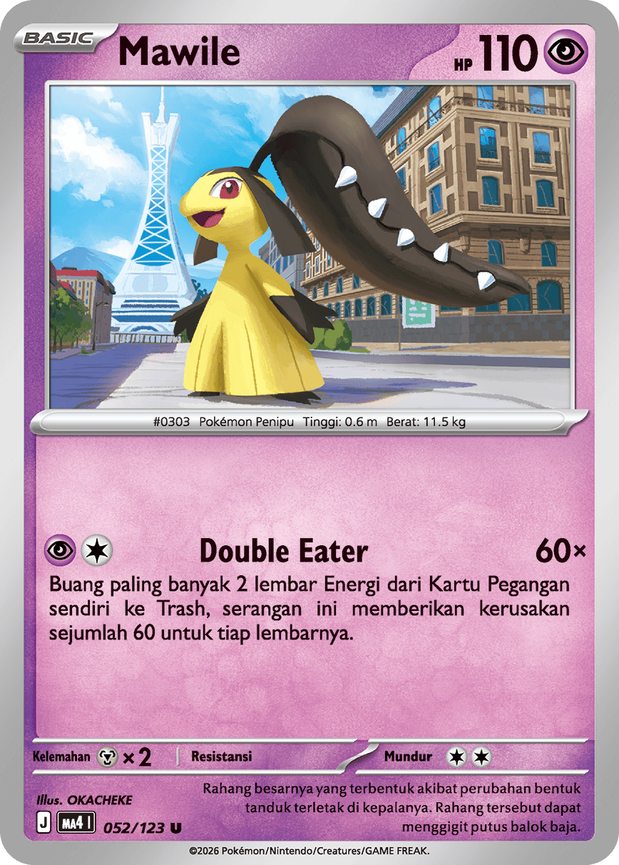 Buang paling banyak 2 lembar Energi dari Kartu Pegangan sendiri ke Trash, serangan ini memberikan kerusakan sejumlah 60 untuk tiap lembarnya.
