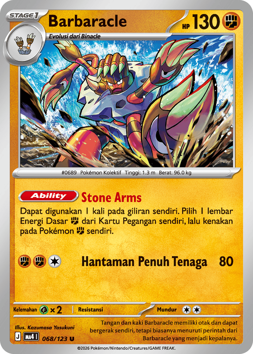 Dapat digunakan 1 kali pada giliran sendiri. Pilih 1 lembar Energi Dasar {Petarung} dari Kartu Pegangan sendiri, lalu kenakan pada Pokémon {Petarung} sendiri.