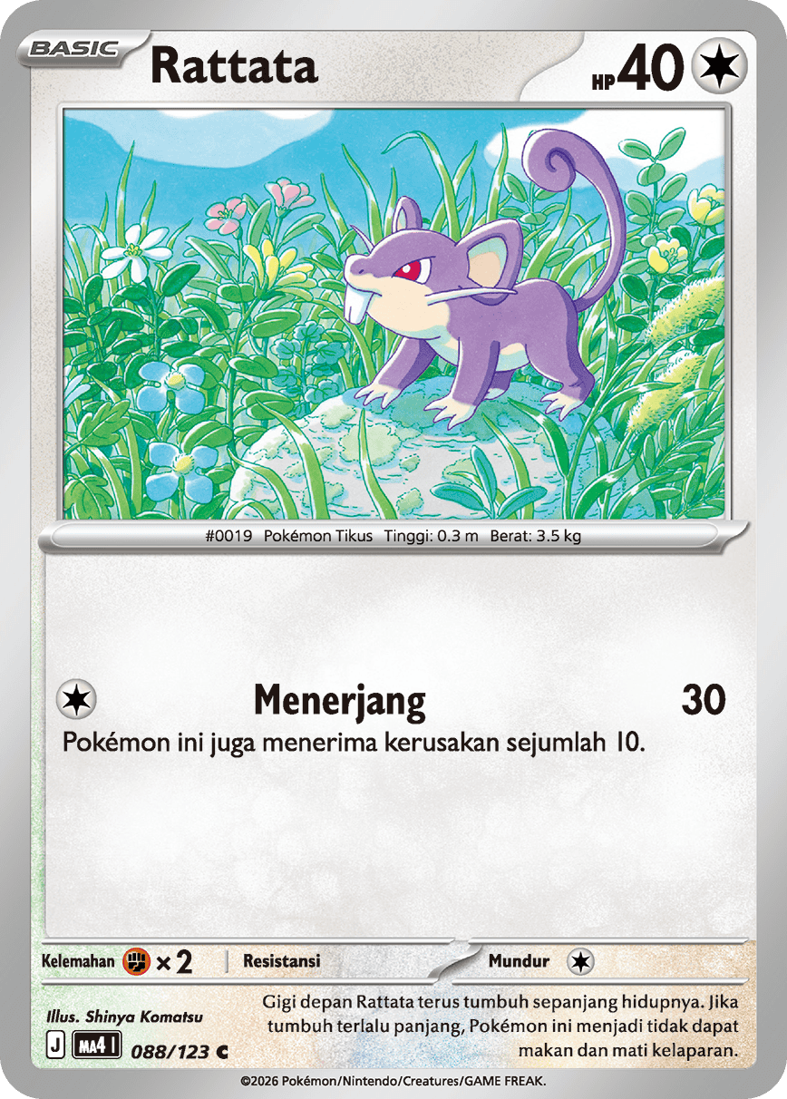 Gigi depan Rattata terus tumbuh sepanjang hidupnya. Jika tumbuh terlalu panjang, Pokémon ini menjadi tidak dapat makan dan mati kelaparan.