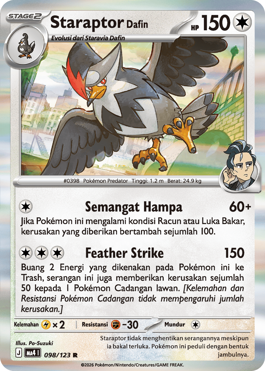 Staraptor tidak menghentikan serangannya meskipun ia bakal terluka. Pokémon ini peduli dengan bentuk jambulnya.