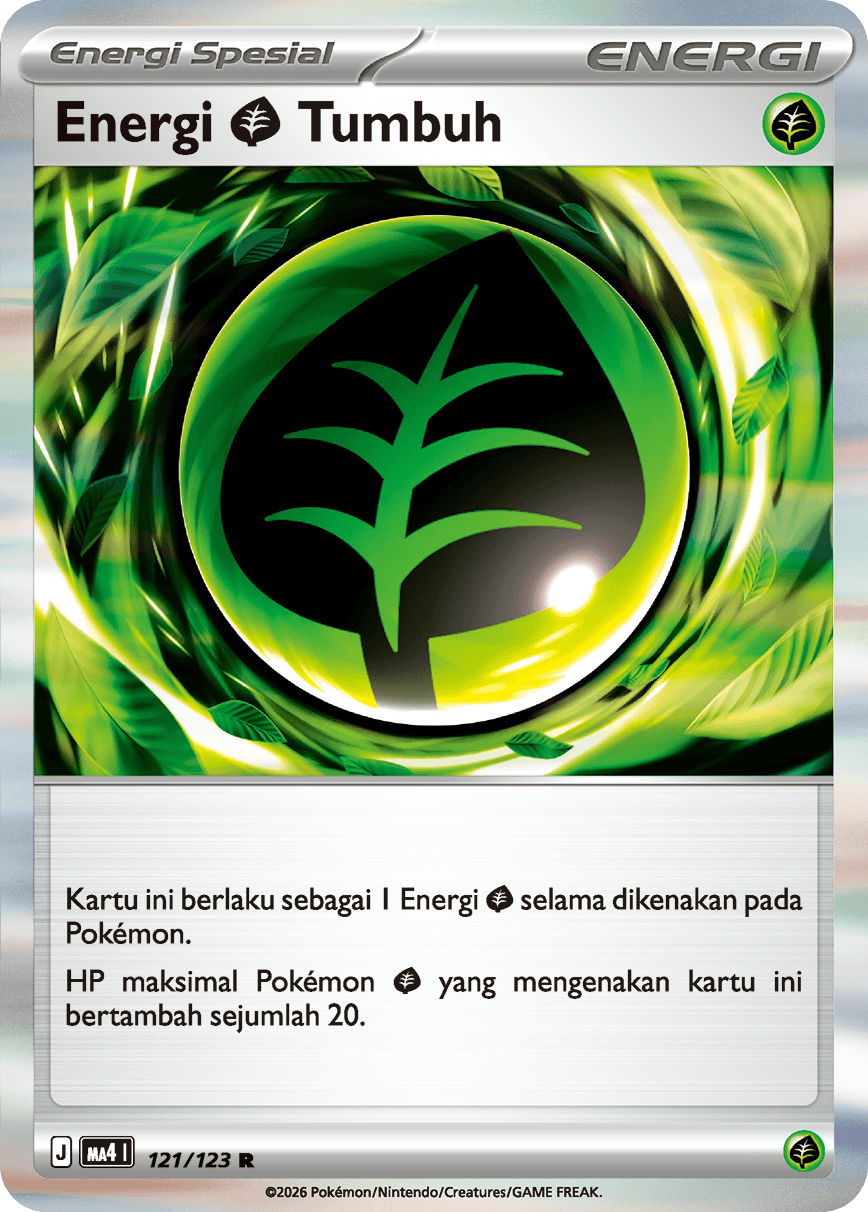 Kartu ini berlaku sebagai 1 Energi {Daun} selama dikenakan pada Pokémon. HP maksimal Pokémon {Daun} yang mengenakan kartu ini bertambah sejumlah 20.