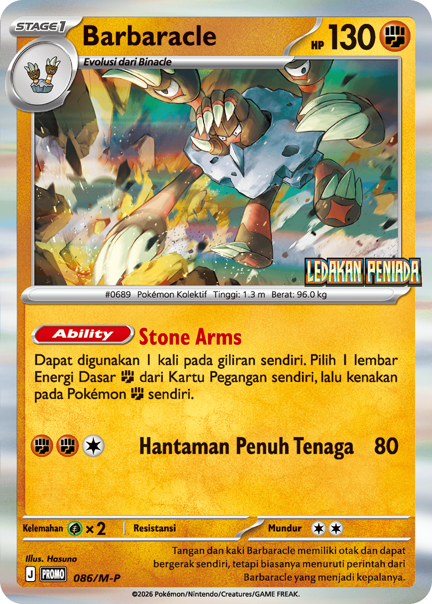 Dapat digunakan 1 kali pada giliran sendiri. Pilih 1 lembar Energi Dasar {Petarung} dari Kartu Pegangan sendiri, lalu kenakan pada Pokémon {Petarung} sendiri.