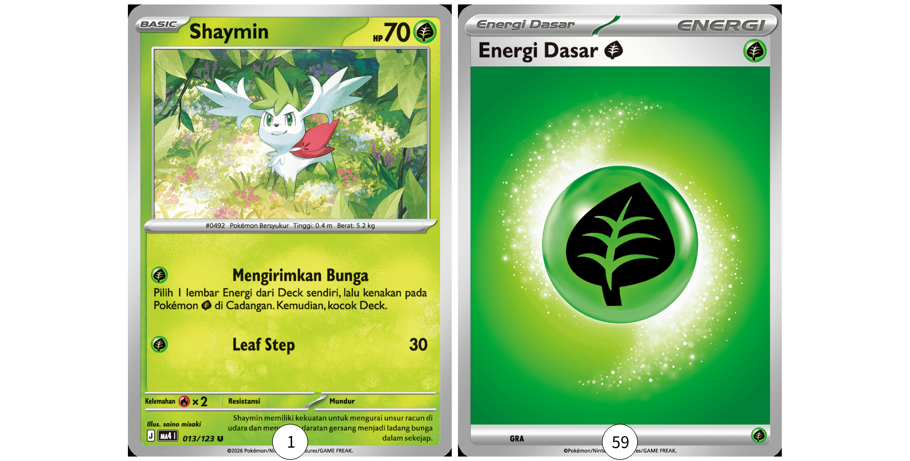 Decklist Buat Deck baru dari Deck ini. Tampilkan sisi depan kartu Tampilkan daftar Pokémon(1) 1 Energi(59) 59 Pokémon(1) Nama Kartu Jumlah Nama Kartu Jumlah Shaymin MA4 013/123 01 Energi(59) Nama Kartu Jumlah Nama Kartu Jumlah Energi Dasar {Daun} MAAF GRA 59 Buat Deck baru dari Deck ini. Kode Deck DVaNDZ-jUumdb-iNhqLf copy Cetak Decklist Sheet Kode Deck telah disalin. Bagikan ke Media Sosial