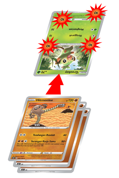 - Jika yang menerima kerusakan adalah Pokémon Cadangan, maka jumlah kerusakan tidak terpengaruh oleh Kelemahan.