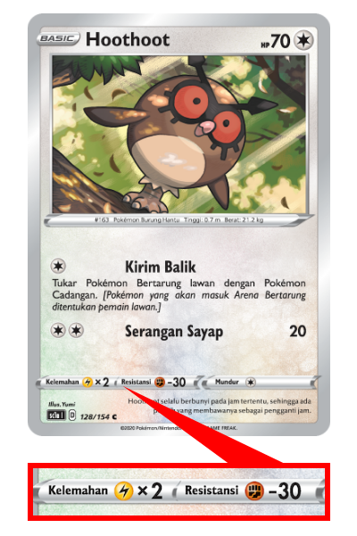 Jika Pokémon yang menerima serangan memiliki Kelemahan yang sesuai, kerusakan yang diterima menjadi dua kali lipat.