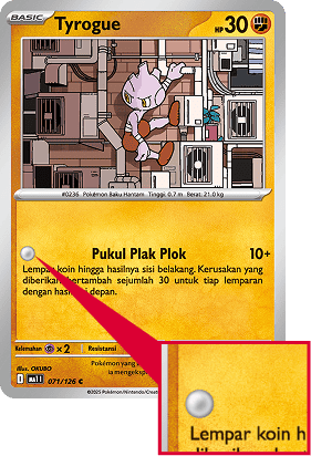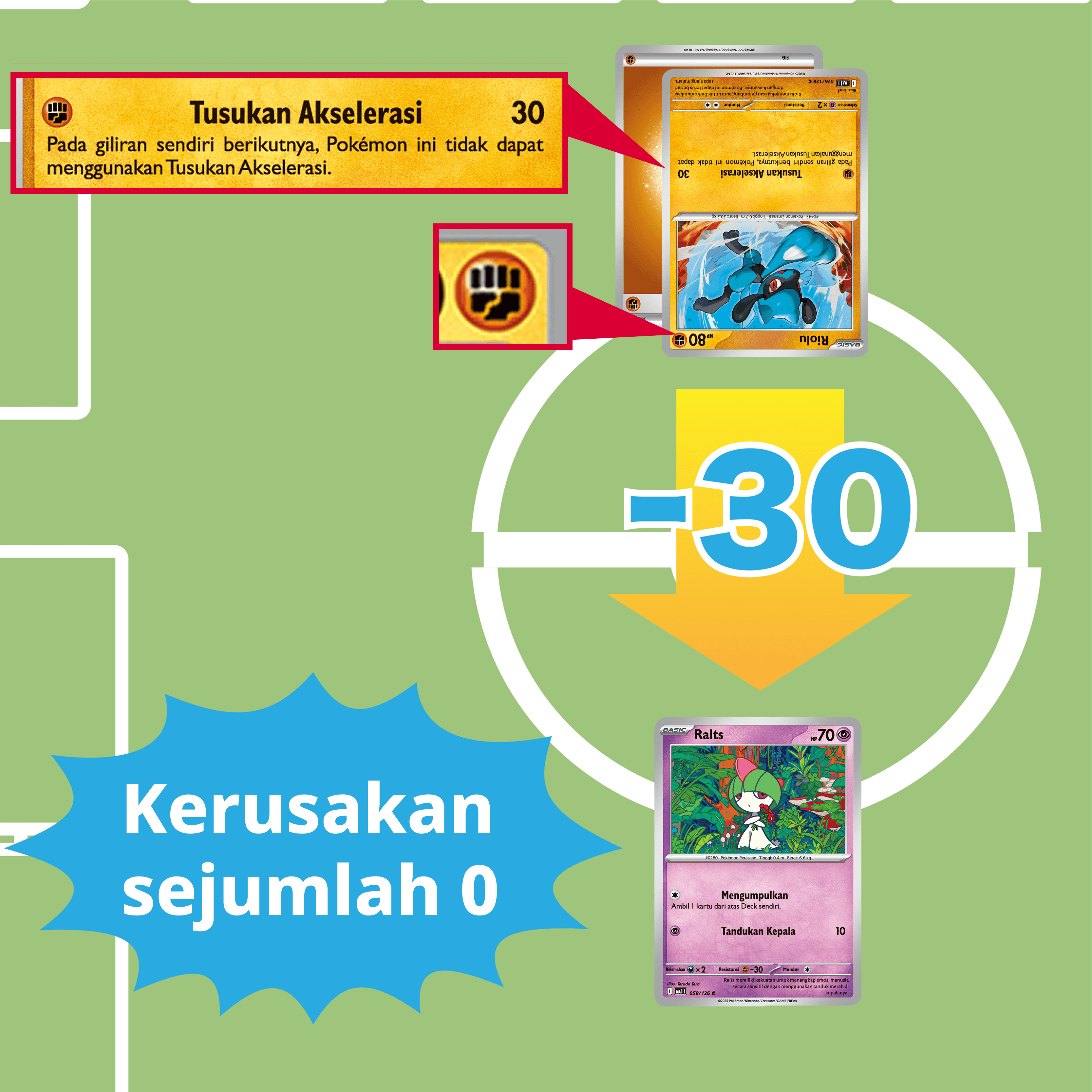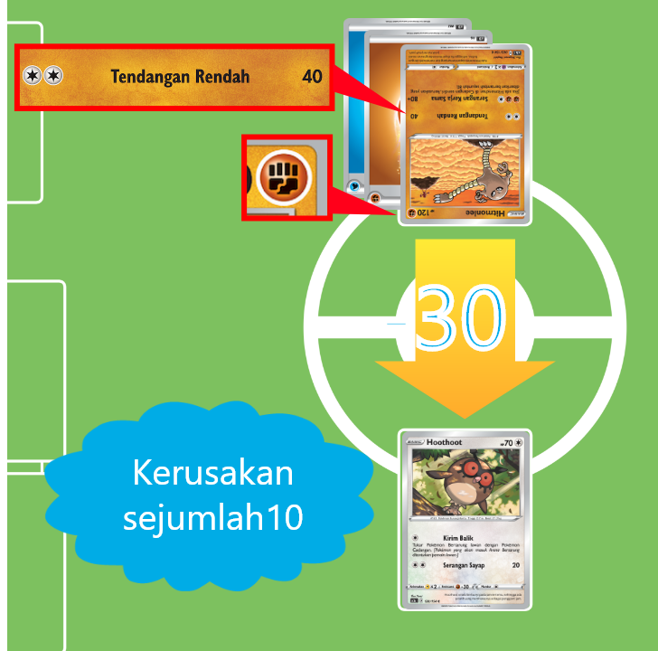 Jika menggunakan serangan, berikan kerusakan pada Pokémon Bertarung lawan sesuai dengan jumlah yang tertulis. Jika tertulis kalimat penjelasan pada serangan, lakukan sesuai instruksi pada kalimat tersebut.