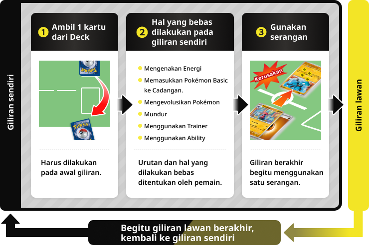 - Serangan tidak dapat digunakan pada giliran pertama Pemain Pertama.