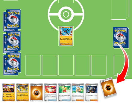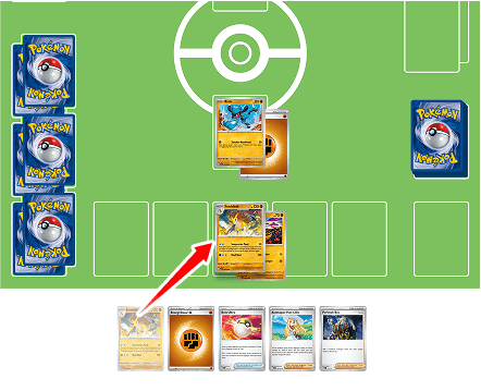 Jika masih ada Pokémon Basic di Kartu Pegangan, pemain dapat memasukkan sampai dengan 5 Pokémon Cadangan.