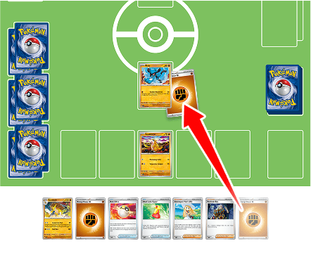 Jika memiliki Energi di Kartu Pegangan, pemain dapat mengenakan 1 Energi pada Pokémon setiap gilirannya.