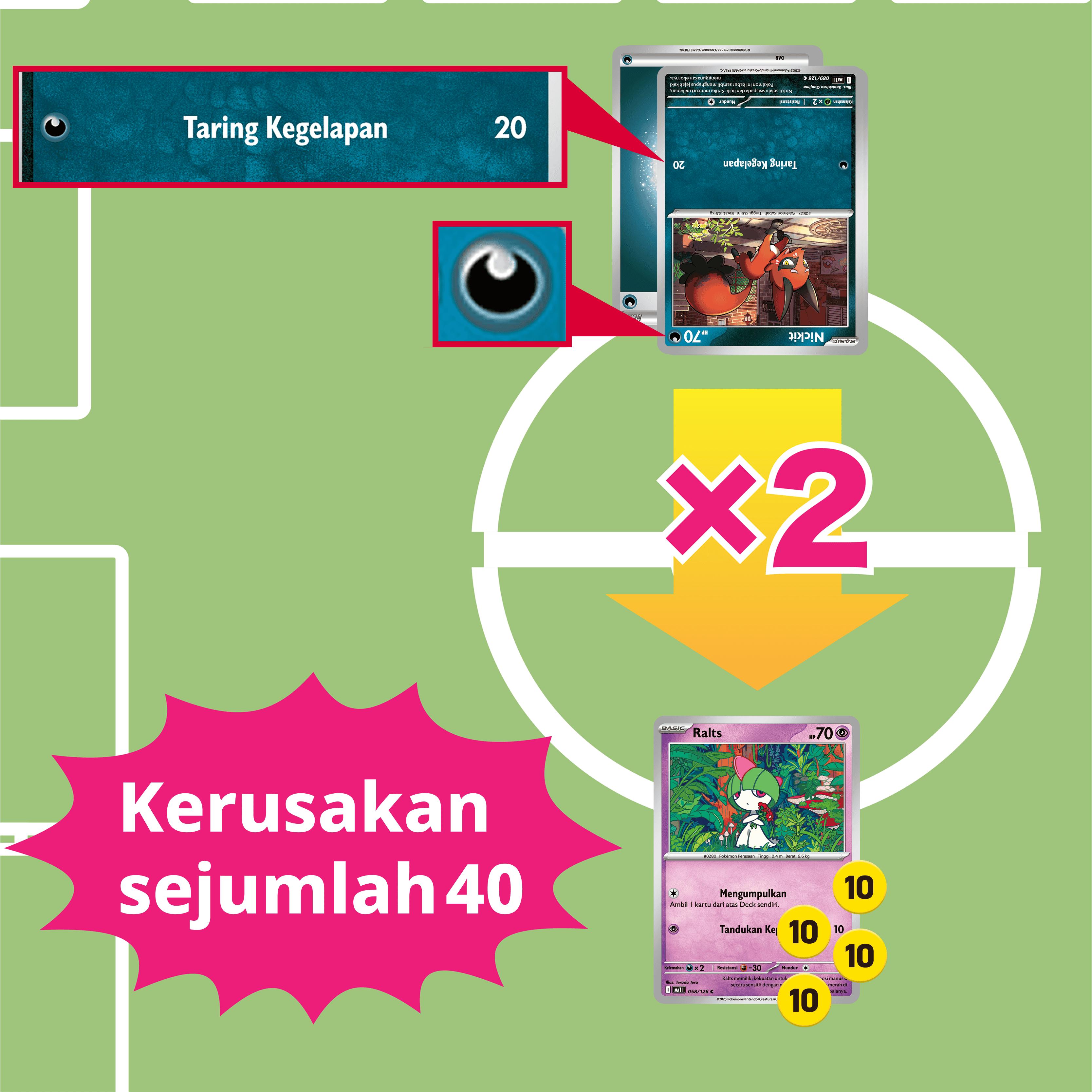 Kerusakan yang diterima Ralts akibat serangan dari Pokémon Kegelapan menjadi 2 kali lipat.
