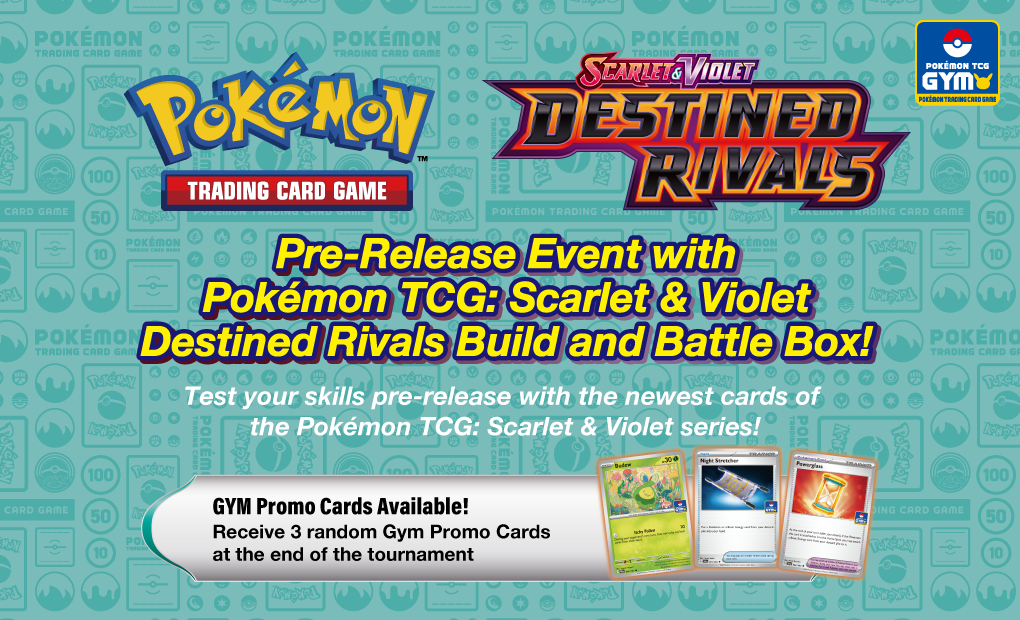 Hi Trainers, to celebrate the release of Pokémon Trading Card Game: Scarlet & Violet – Destined Rivals, we are hosting a Build & Battle Box Pre-Release Event this May. Each player will receive an additional 3 booster packs as a participation prize at the end of the tournament!