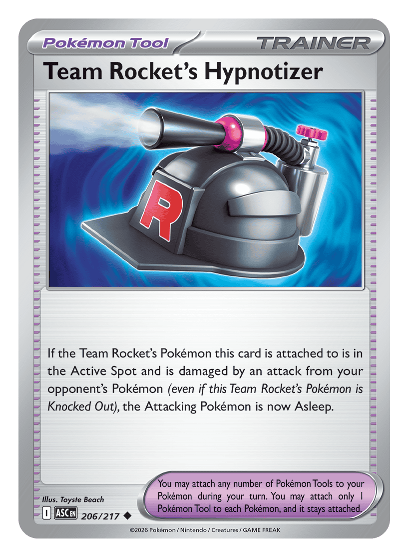 If the Team Rocket’s Pokémon this card is attached to is in the Active Spot and is damaged by an attack from your opponent’s Pokémon (even if this Team Rocket’s Pokémon is Knocked Out), the Attacking Pokémon is now Asleep.