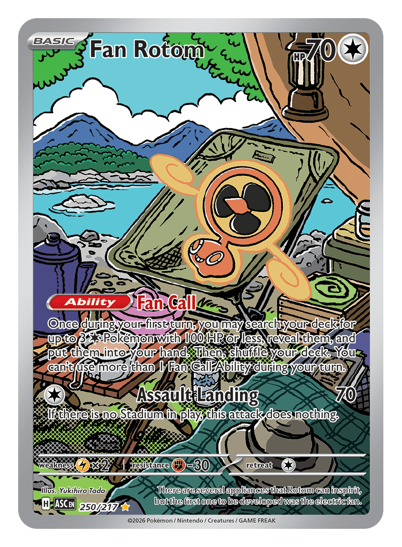 Once during your first turn, you may search your deck for up to 3 {C} Pokémon with 100 HP or less, reveal them, and put them into your hand. Then, shuffle your deck. You can’t use more than 1 Fan Call Ability during your turn.