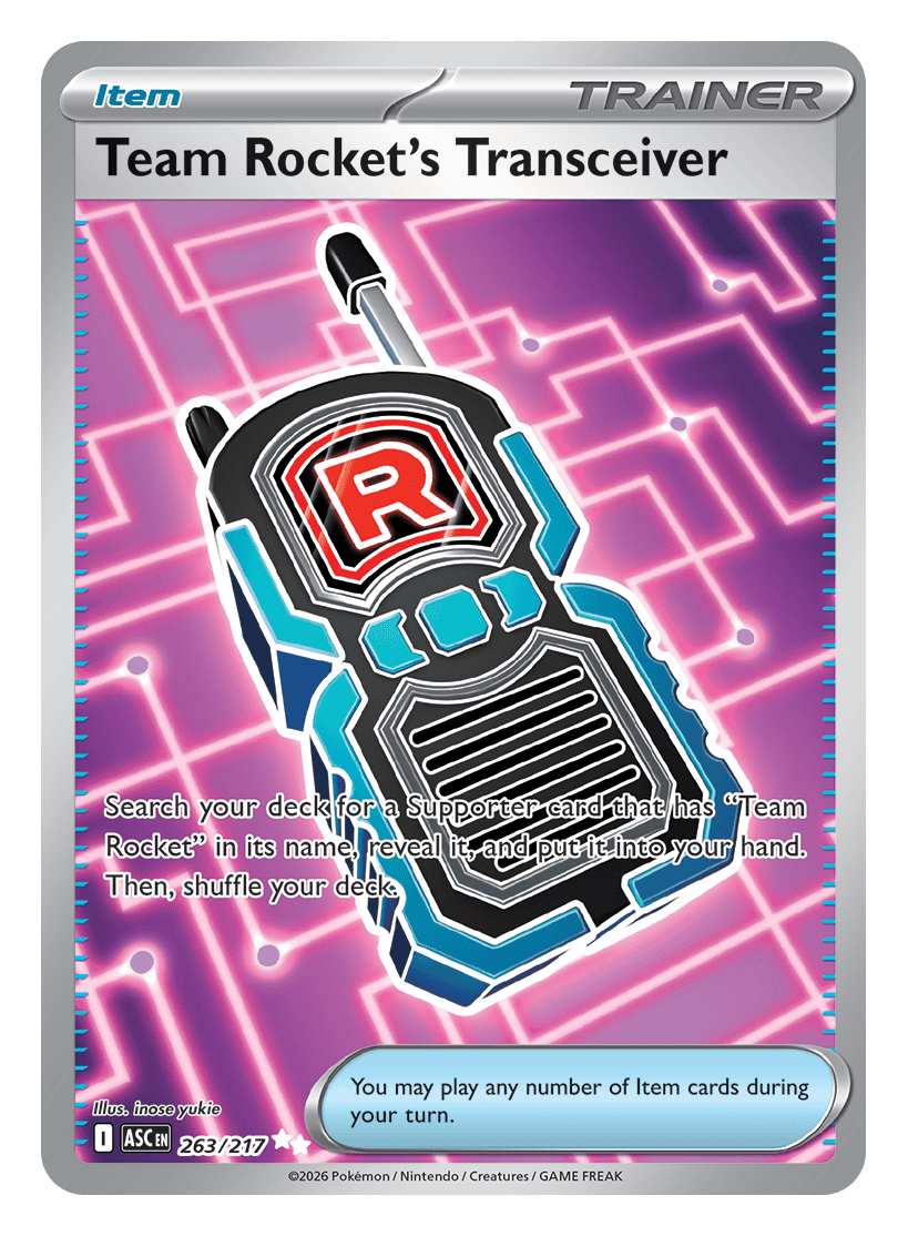 Search your deck for a Supporter card that has “Team Rocket” in its name, reveal it, and put it into your hand. Then, shuffle your deck.