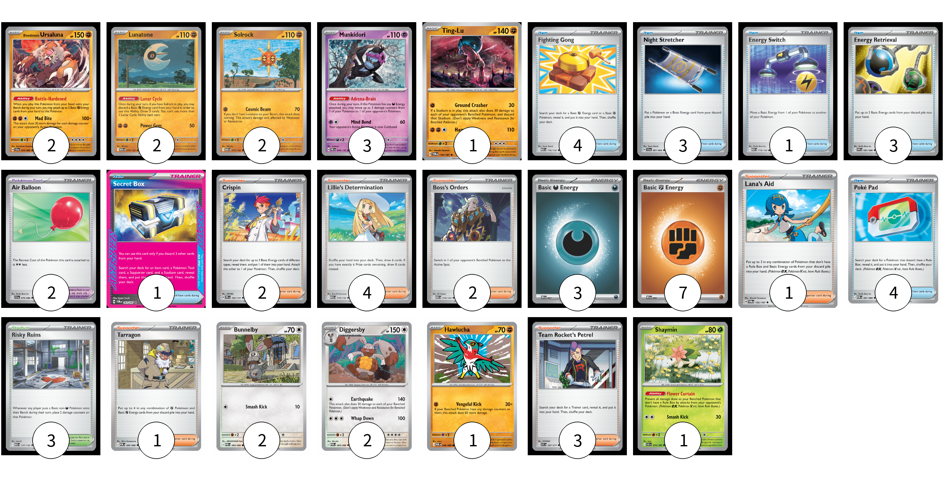 Card Name Number of Cards