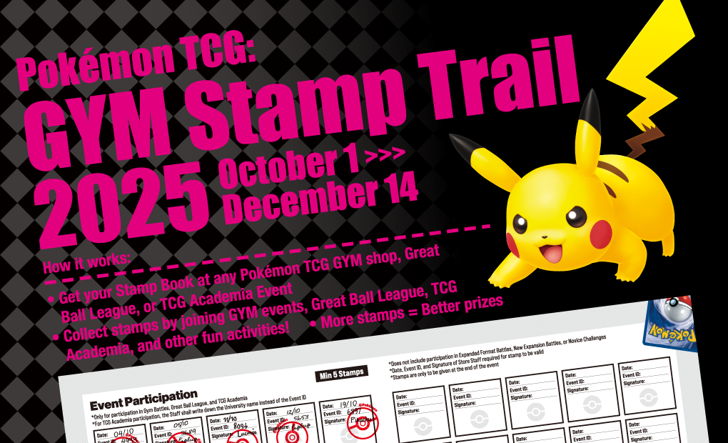Join the Pokémon TCG: GYM Stamp Trail and complete challenges to collect stamps and get your hands on campaign