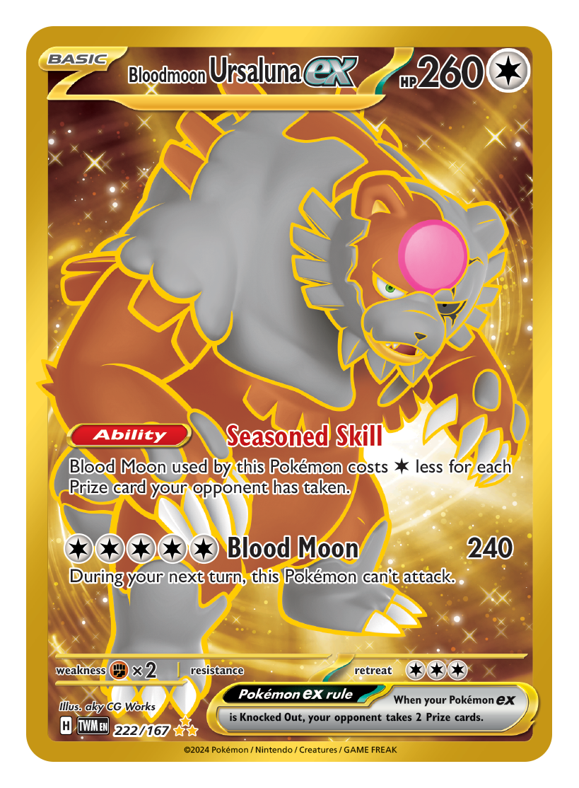 Blood Moon used by this Pokémon costs {C} less for each Prize card your opponent has taken.
