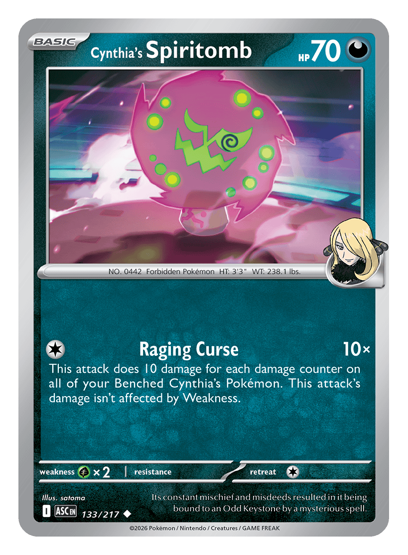 This attack does 10 damage for each damage counter on all of your Benched Cynthia’s Pokémon. This attack’s damage isn’t affected by Weakness.