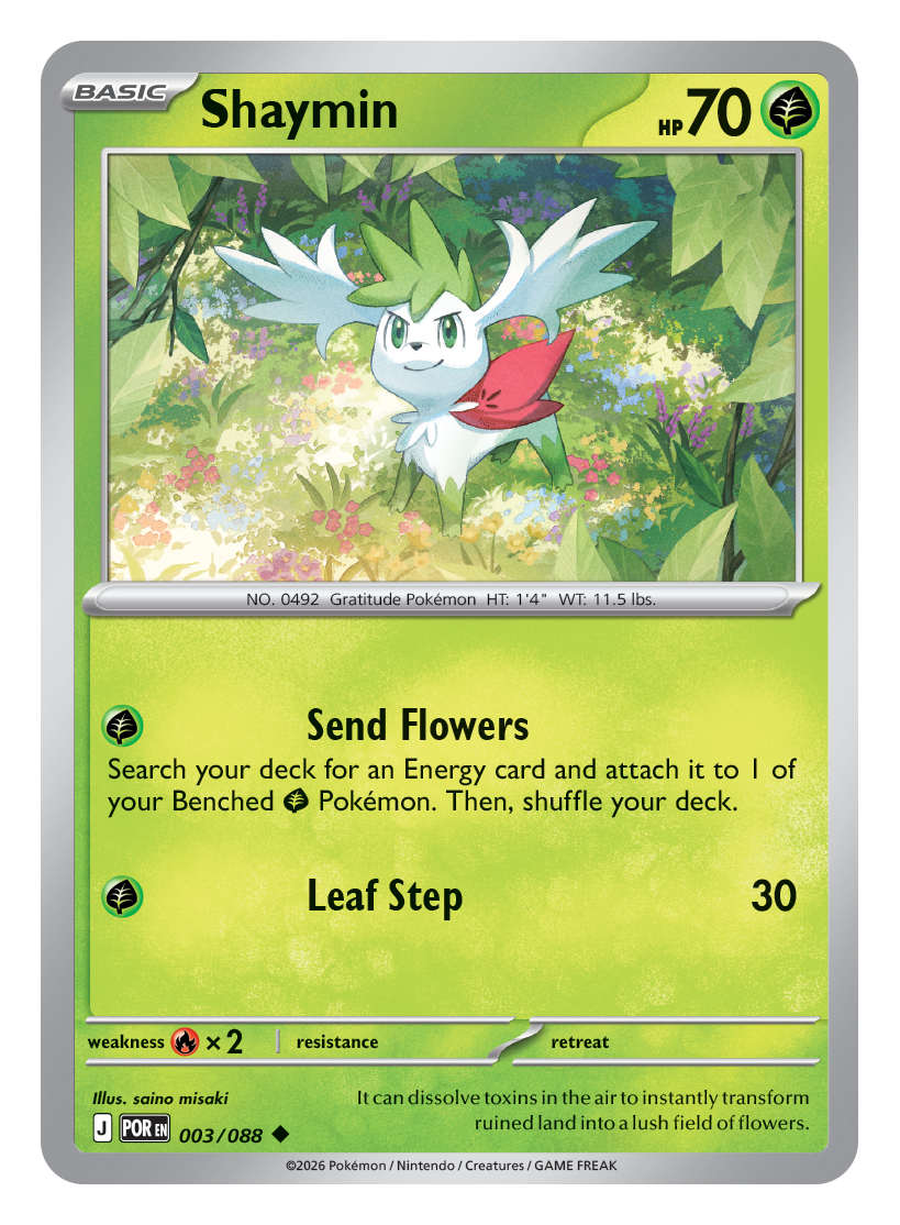 Search your deck for an Energy card and attach it to 1 of your Benched {G} Pokémon. Then, shuffle your deck.