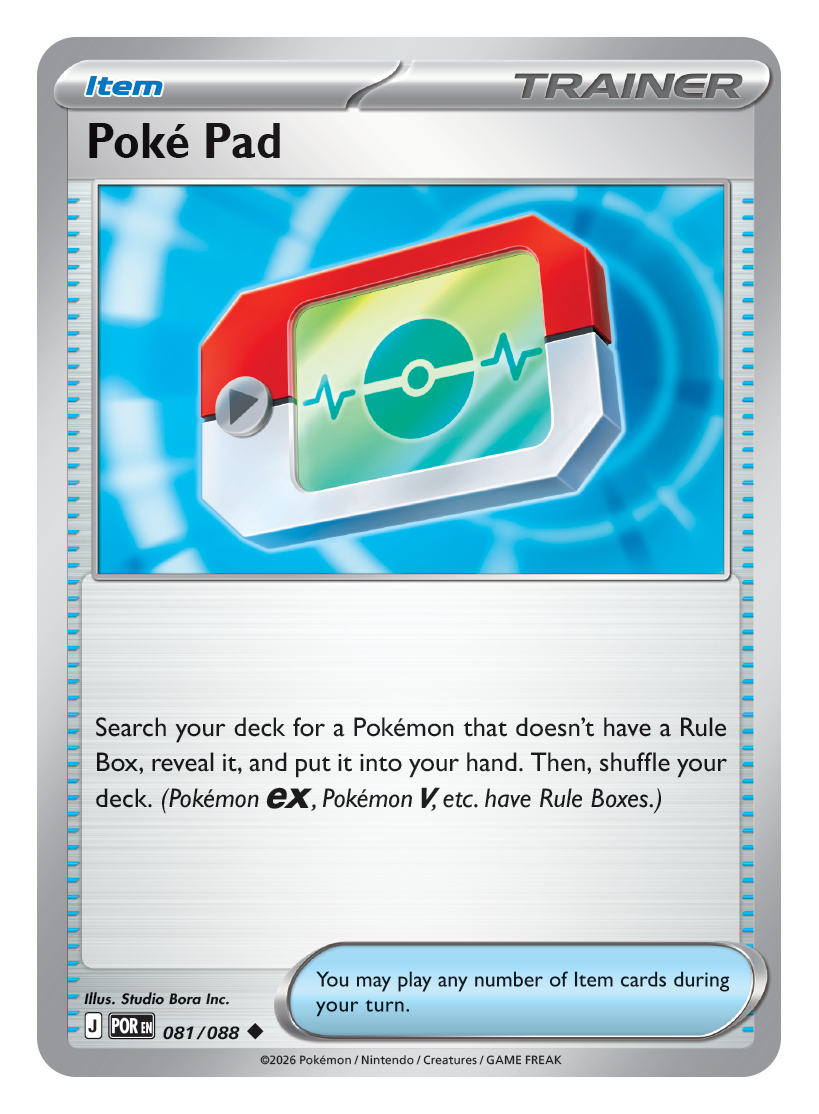 Search your deck for a Pokémon that doesn’t have a Rule Box, reveal it, and put it into your hand. Then, shuffle your deck. (Pokémon {ex}, Pokémon {V}, etc. have Rule Boxes.)